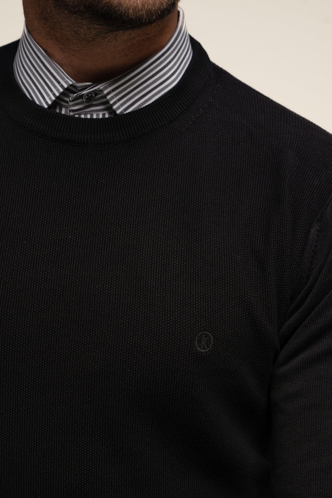 Crni muški džemper , O izreza,sa teksturom na prednjem delu , veoma prijatan za nošenje u svakoj prilici.
