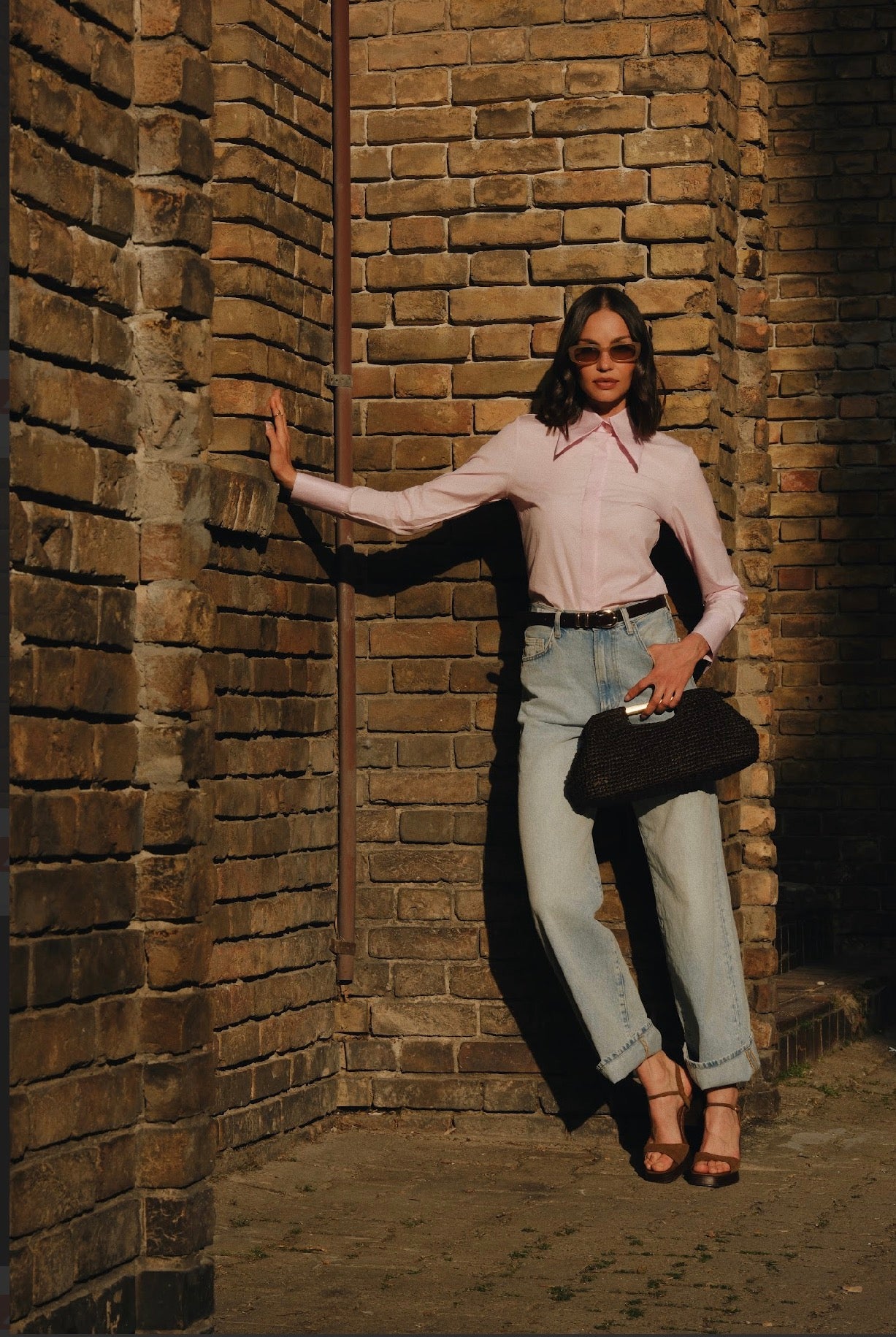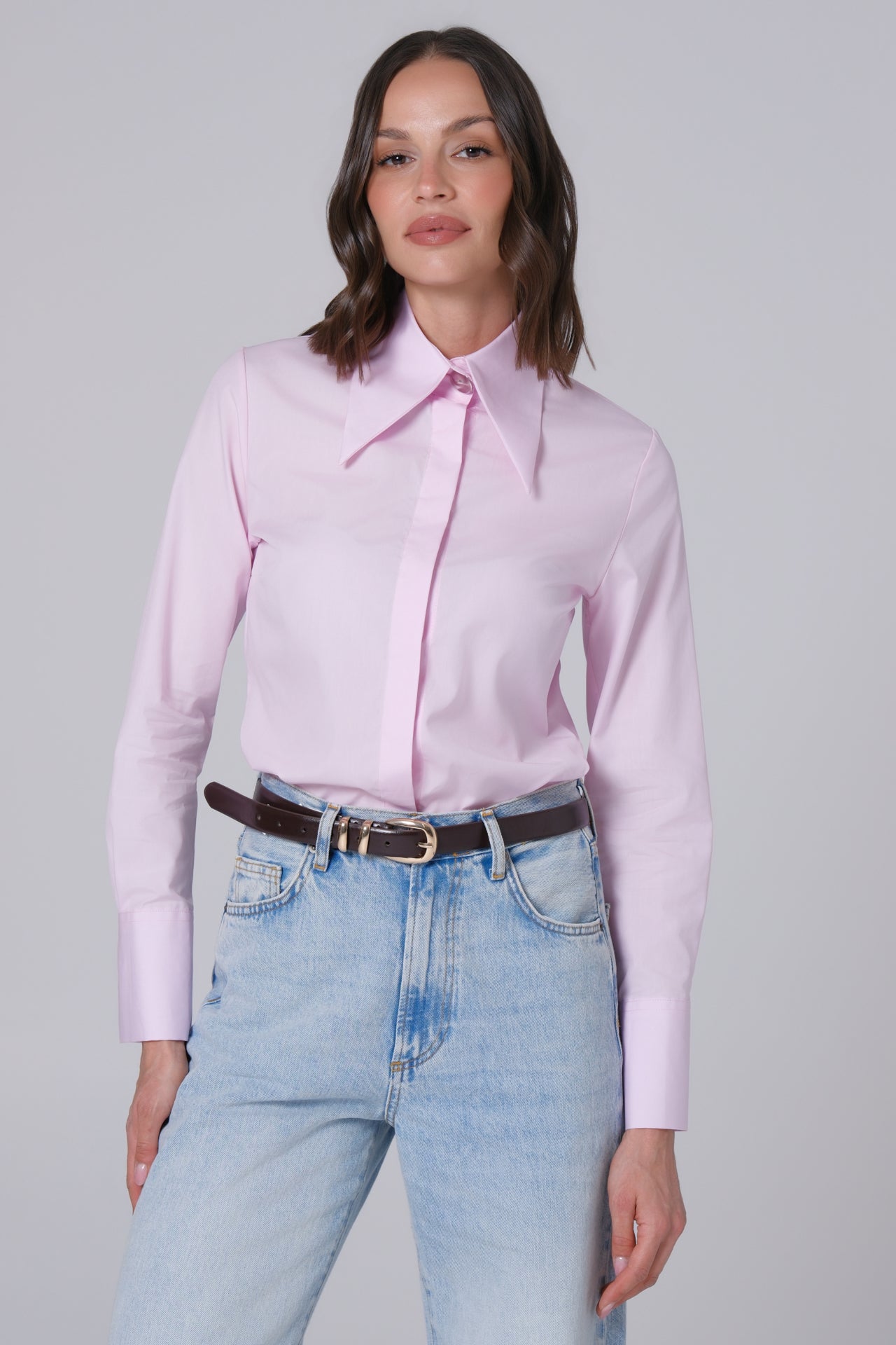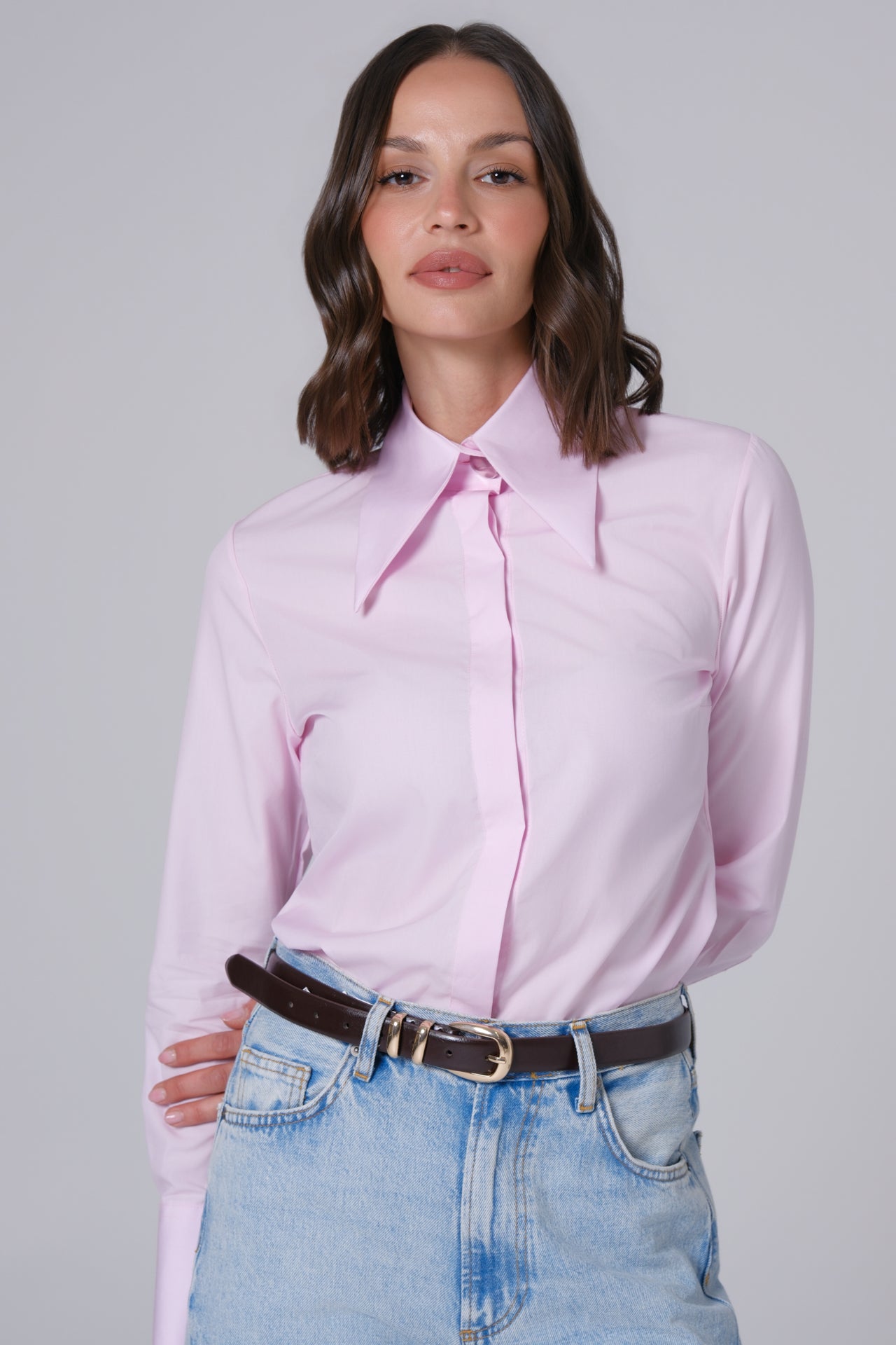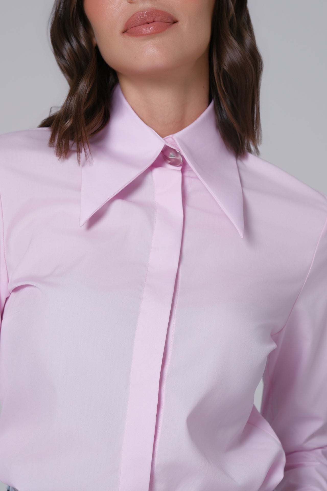 Blago strukirana ROZE ženska košulja sa velikom kragnom.